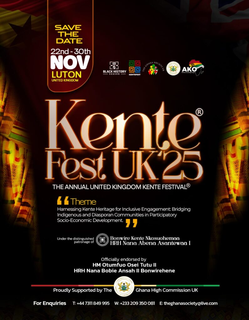 News Kente Fest UK 25 | The Annual United Kingdom Kente Festival September 25, 2025September 25, 2025 Kofi Nimoh SAVE THE DATE: 22nd – 30th November 2025 Share Facebook Twitter Pinterest Linkedin